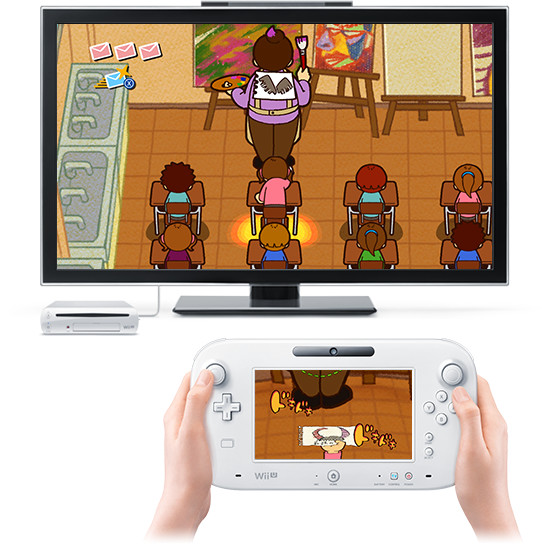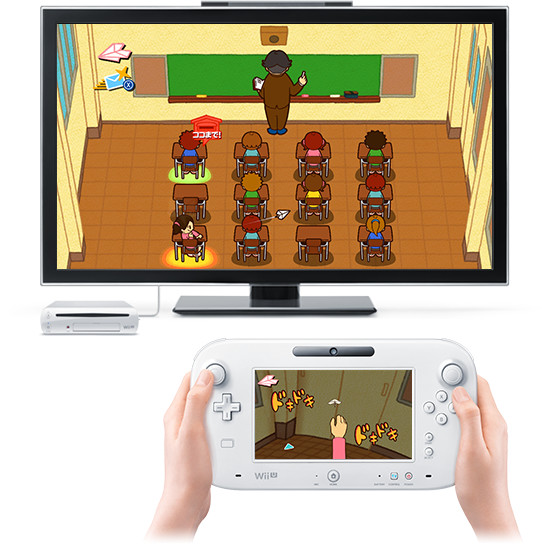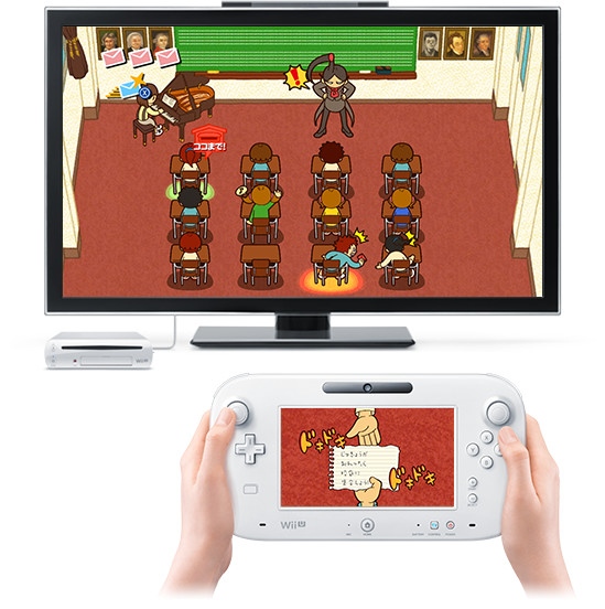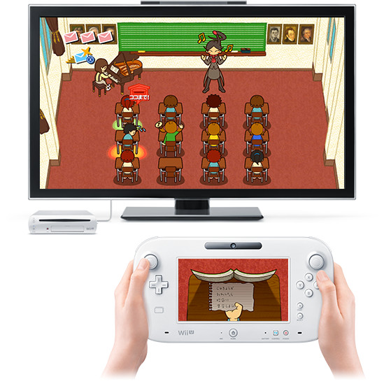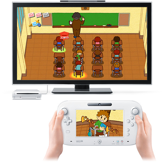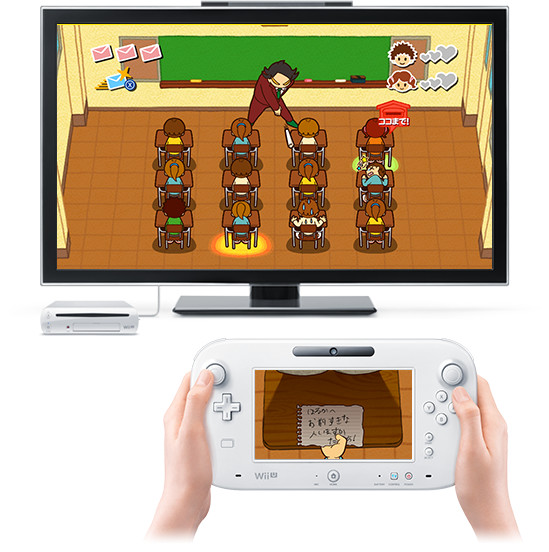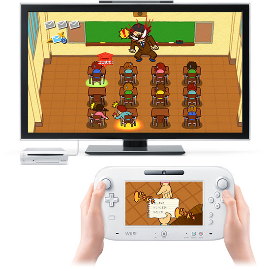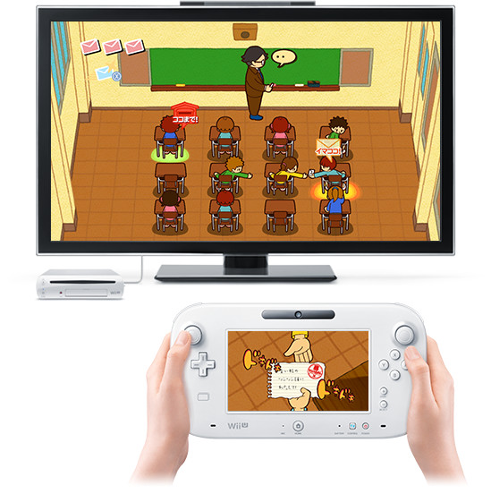 テレビ画面の先生に見つからないように、Wii U GamePadで手紙を