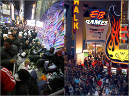These are pictures taken at the North American launch events. About 3000 people waited in line at Toys R Us in New York's Times Square, and there were 2000 people waiting in line in front of the EB Games near Universal Studios in Los Angeles. |