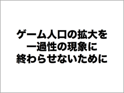 そのテーマは、継続的なゲーム人口の拡大です。