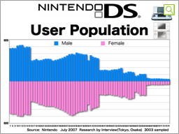 It's just like this. To tell you the truth, there is one difference-in the research that you saw before, we gathered people who were 64 years old or younger. Noticing that it was not enough to cover the actual total market, we are now inviting respondents up to the age of 74. Of course, the sheer installed base of DS had already exceeded 18 million by that time, so it is natural to see the total size of the user base expanded. You can also notice that DS has users in any and all of the age demographics. The ratio of female users reached an impressive 53%.