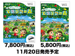 「街へいこうよ どうぶつの森」は、Wiiスピーク 同梱のパッケージを7,800円で、ソフト単体のパッケージを5,800円でそれぞれ11月20日に発売いたします。Wiiスピーク単品は3,500円で発売しますので、同梱パッケージはWiiスピークに興味をお持ちのお客様には、ちょっとお得な設定になっています。