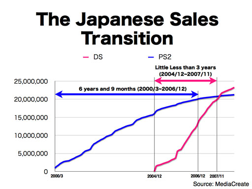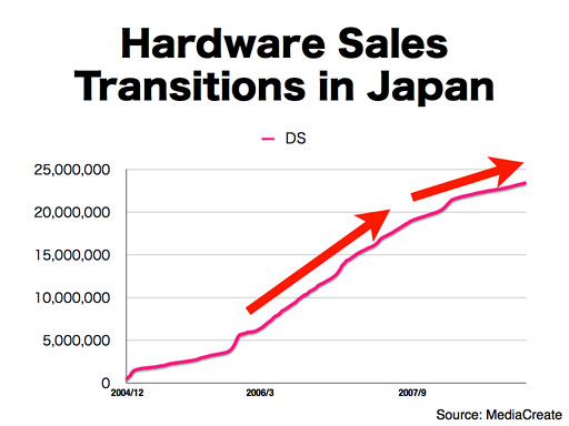 The common belief in this game business was that 20 million hardware sales was the limit in the Japan market, therefore many people appeared to believe the DS market had been saturated.