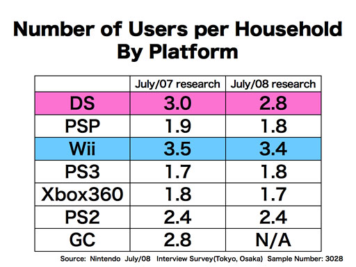 As the number of users per household include the household with just one person, the high numbers attained by DS and Wii are a testament to the high ratio of the entire-family's involvement with them.