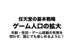 携帯型ゲーム機は、いつでも、どこでも、楽しんでいただける可能性を持ったデバイスであり、普及の究極の姿は、「一家に1台」ではなく、「一人に1台」ということになります。