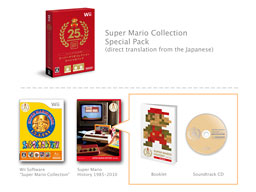 We will sell this Super Mario Collection Special Pack as a limited edition for the Super Mario Bros. 25th Anniversary campaign available until January 10, 2010. The software is scheduled to be launched on October 21 at the suggested retail price of 2500 yen. In accordance with the demand, the company will produce and ship the product until the end of this campaign.