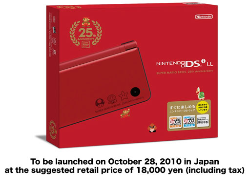 Also, we will launch a special Super Mario 25th edition of Nintendo DSi XL on October 28. The suggested retail price is the same with that of normal Nintendo DSi XL hardware.
