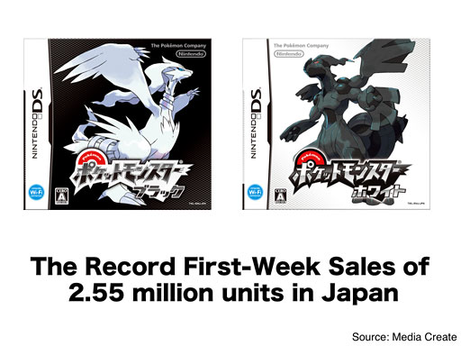 When the software was actually launched, Pokémon Black and Pokémon White broke the first-week sales record for any Pokémon series titles. These 2.55 million units were in fact the record first-week sales for any Nintendo DS software and, when we looked into past data as well, it turned out that Pokémon Black and Pokémon White have actually established the new first-week sales record in the history of the entire Japanese video game industry.