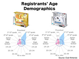 These are the radar charts of the Club Nintendo registrants of Pokémon Diamond and Pearl that were launched four years ago in September 2006 and show the registrants’ age demographics by gender.