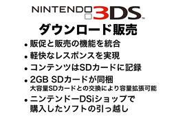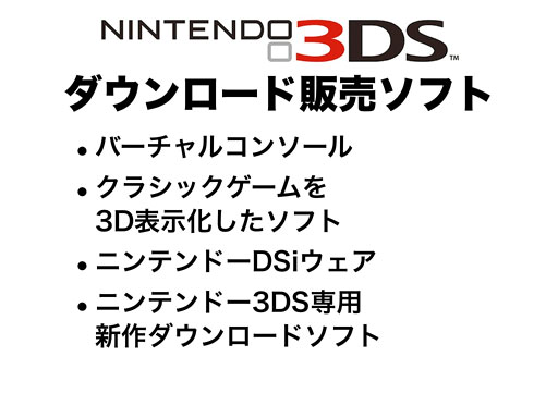 また、ニンテンドーDSiウェアをお買い求めのお客様が、ニンテンドー3DSを購入された際には、既に購入されていたDSiウェアを引っ越しできるような機能も用意します。 -