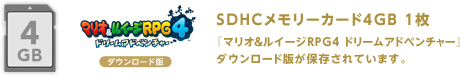 SDHCメモリーカード4GB 1枚 『マリオ&ルイージRPG4 ドリームアドベンチャー』ダウンロード版が保存されています。