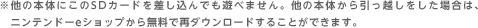 ※他の本体にこのSDカードを差し込んでも遊べません。他の本体から引っ越しをした場合は、ニンテンドーeショップから無料で再ダウンロードすることができます。