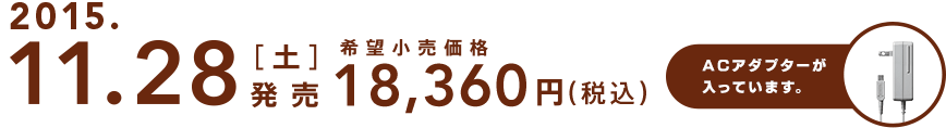 2015.11.28[土]発売 希望小売価格18,360円(税込)ACアダプターが入っています。