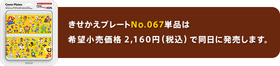きせかえプレートNo.067単品は希望小売価格2,160円(税込)で同日に発売します。