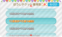 誕生日をたくさんあつめたり、1つの月をコンプリートしたりするとぼうしチケットがもらえます。