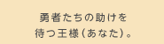 とらわれの王様(あなた)を助けるため、勇者(すれちがったMii)の力を借りて敵を倒しながら冒険します。勇者は、ゲームコインを使って雇うこともできます。
