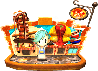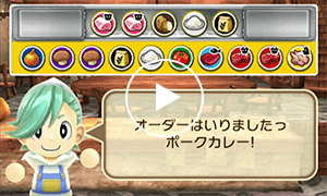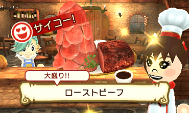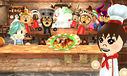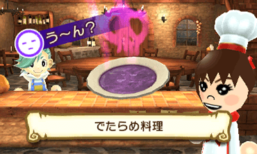 さまざまな食材を組み合わせて、すれちがったMiiたちにオーダーどおりの料理をふるまいます。
