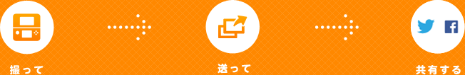 ニンテンドー3DS専用ソフト『とびだせ どうぶつの森』や『トモダチコレクション 新生活』など、プレイ中の画面撮影に対応したソフトで利用することができます。たとえば、『どうぶつの森』では友達の村に遊びに行った時、『トモダチコレクション』ではゲーム内に暮らす住人の決定的瞬間など、ゲーム内のひとコマを写真に収めてSNSで共有することができます。また、投稿には自動でハッシュタグが追加されます。