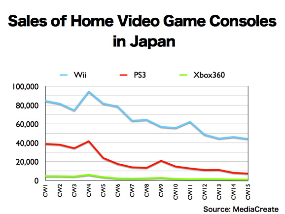 This chart illustrates the weekly sales transition of each home video game console in Japan since the beginning of this year.
