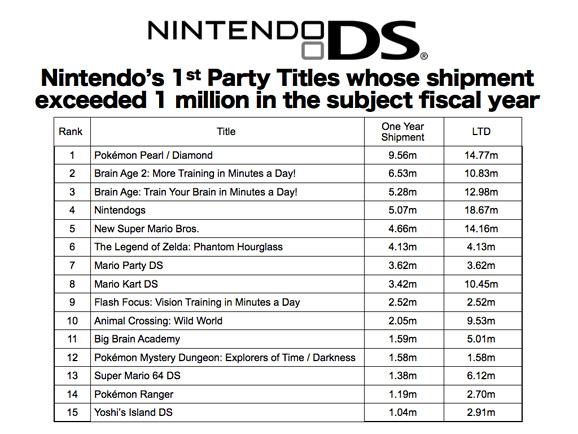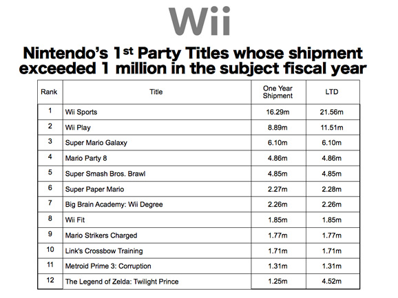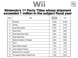 For your information, Wii Sports which tops the list has been bundled with the Wii hardware in overseas markets. The list should give out the impression that Wii software has been selling well in the hardware's second year.