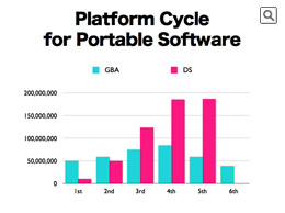 In its first and second years, DS software could not reach the level achieved by GameBoy Advance. However, expansion of the gaming market has activated the big change. We can observe that something extraordinary is happening for DS.