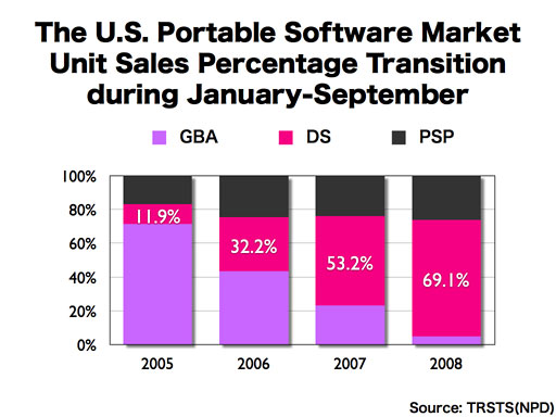 When we compare the overall percentages in this manner, the increased significance of DS in the portable market becomes more apparent.