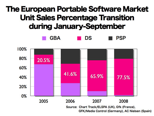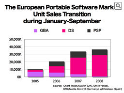 In Europe, DS portable software accounts for more than three-quarters of the total portable software sales.