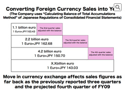 We apply what is called in Japan “the Calculating Balance of Total Accumulations Method” of the Japanese Regulations of Consolidated Financial Statements when we convert sales in currencies other than yen into the Japanese yen. According to this accounting method, a 12-month period is regarded as one fiscal year. The quarterly sales are calculated by subtracting the total sales in the fiscal year by the end of the preceding quarter from the total sales in the fiscal year as of the end of the subject quarter.