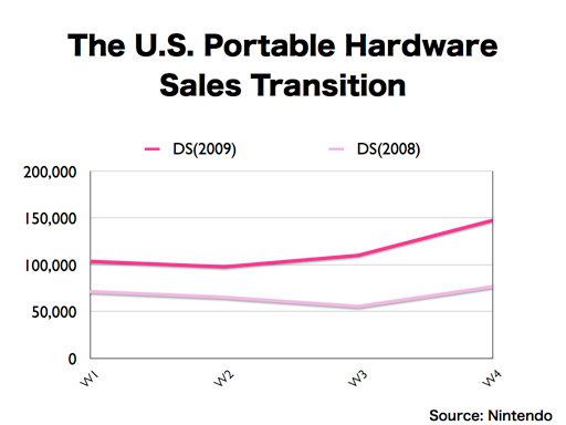 According to NPD, 10.17 million Wii consoles and 9.95 million DS hardware were sold in the U.S. between January to December 2008, which both set the new top two records for yearly video game sales. The previous record was held by Nintendo DS, when it sold 8.5 million units in 2007, so both platforms have renewed the previous record by a large margin.