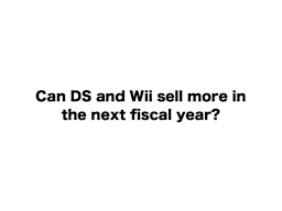 Those who are concerned that Nintendo business may peak out this fiscal year and may shrink from the next year are also basing their concerns upon the past platform cycle theory. Especially in the case of DS, when you apply this five-year cycle theory to a platform that has been through its 5th holiday season since its 2004 launch, a concern that DS business may slow down in the next fiscal year may appear to be logical at first glance. Since technology continues to evolve, I do not think any hardware can enjoy eternal life. Someday, we will need a new platform for sure, and of course, Nintendo is always preparing for that. However, now that our customer base has expanded this drastically, we do not think it appropriate to conclude that past platform lifecycle theory can and should be applied to the current generation.