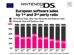 In Europe, where the largest number of Touch Generations titles such as Brain Training and Nintendogs were sold, a number of third party publishers are actively launching their titles on DS to favorable results.