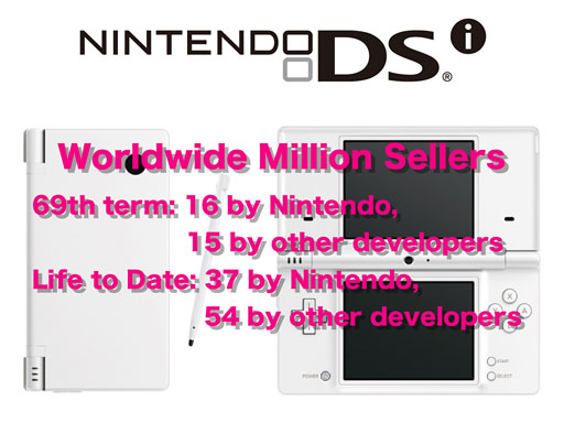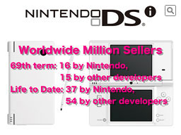 During the 68th term, there were 15 titles by Nintendo and The Pokémon Company, and 11 titles by other software developers, which were worldwide million sellers on the DS.