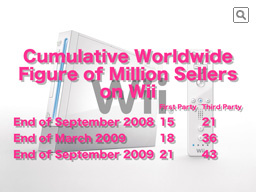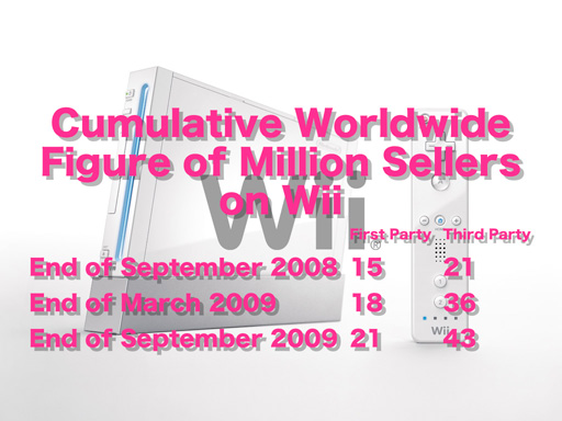 As for Wii, Wii titles which had shipped more than a million units increased by three from first party that includes Nintendo and Pokémon, and by seven from third party. Lifetime numbers are 21 from first party and 43 from third party.