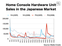 This chart shows the hardware sales situation of the Japanese market. I think many of you are reading the weekly sales report of Media Create. As you probably know, the current situation of Wii can not be defined as healthy.