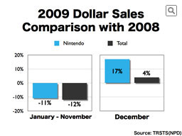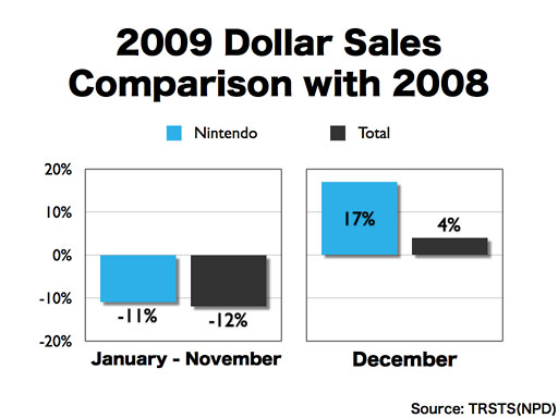 In the graph on your left, we are seeing the dollar sales decline in January-November 2009 time period against the same period in the previous year. The entire market saw a 12% decline, and Nintendo products showed a similar decline of 11%. However, as I explained earlier, both Nintendo DS and Wii showed strong sales momentum in December, which outnumbered December 2008 sales. As a result, when we compare the full year of 2009 to 2008, the decline of Nintendo products' dollar sales was contained to 3% and that of entire market to 8%.
