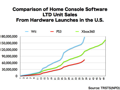 Also according to NPD data, the cumulative software unit sales for the Wii platform reached 178.04 million at the end of December 2009, outnumbering the 164.7 million unit software sales for Xbox360, which launched a year earlier than Wii. Wii has become the platform on which now has the biggest number of software sold among all the existing platforms in the U.S.