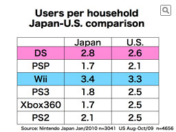 This is the most recent survey result. It is apparent from the data that Nintendo DS and Wii have higher number of users per household, which implies that they are likely to be played by more number of family members than other platforms. On the other hand, through our surveys, we have come to learn some issues with which we need to tackle in the mid-term. That is, how can we change for the better society's attitudes towards video games.