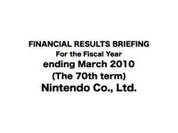 When we compare these unit shipment results with the forecasts we made at the time when we announced our mid-term results last October and, for Wii software, with the forecast we made when we announced our 9-month financial result in late January this year that included software sold as part of the bundle for Wii hardware during October-December period of 2009, a rather big difference is found in the shipment of Nintendo DS hardware. While Nintendo DS hardware sales progressed in Japan and in the U.S. continent as we had anticipated, our expectation could not be met in the European market.