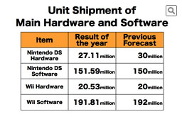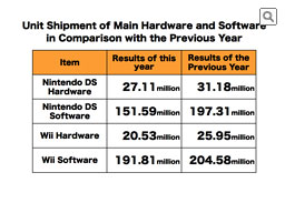 * In the first half of the year, the overall Wii business had been losing its momentum due to the lack of strong software. While the successive outpourings of strong titles in the latter half helped regain momentum in the year-end sales season, when we look at the entire year, Wii hardware unit shipment decreased in comparison to last year. Plus, there was the effect of Wii hardware price cut in last fall.