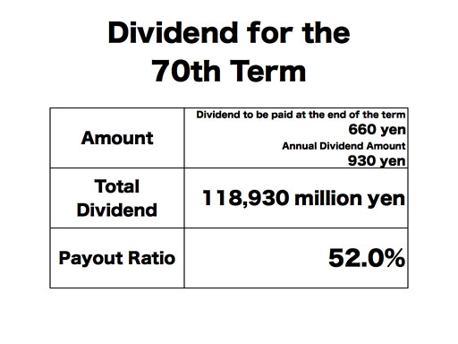 The dividend becomes higher when we choose 33% of the consolidated operating income as the dividend source for the fiscal year ended March 31, 2010. Accordingly, we are planning to pay 930 yen per share as the annual dividend. As the company already paid 270 yen per share as the interim dividend, the dividend to be paid at the end of the fiscal year will be 660 yen per share. We would like to make the dividend payments after asking at the Shareholders Meeting to resolve this.