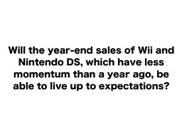 More specifically, I recognize that some of you are wondering, “Will Wii and Nintendo DS, which have less momentum than a year ago, be able to sell at the end of the year just as the company expects?”