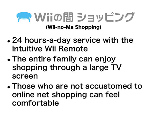 Taking this opportunity, we will renovate Wii-no-Ma. Including the addition of this shopping capability, we will implement several improvements based upon the lessons we were able to obtain through our experiences so far.
