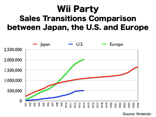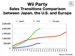 When it comes to global big-hit sellers for Wii software, as a general rule, the U.S., which has the largest installed base of Wii hardware, sells the most units. However, this is not the case for the U.S. sales of "Wii Party", and Europe has the top figure. We believe that this software still has potential in the U.S., so we are planning to further promote it in order to raise this number.