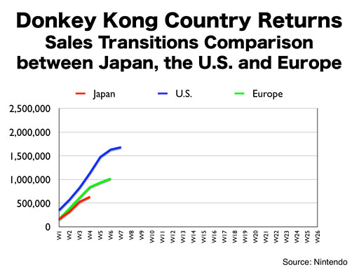 From November to December of last year, "Donkey Kong Country Returns", the long-awaited sequel of the side-scrolling action game "Donkey Kong Country" for Super NES, was released almost simultaneously around the world, and this software has been well-received by consumers.