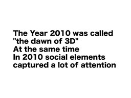 2010 was not only called "the dawn of 3D" but, in the year 2010, the terms "social network" and "social games" were often discussed as social topics. It has been reported that social entertainment is the key to video games.