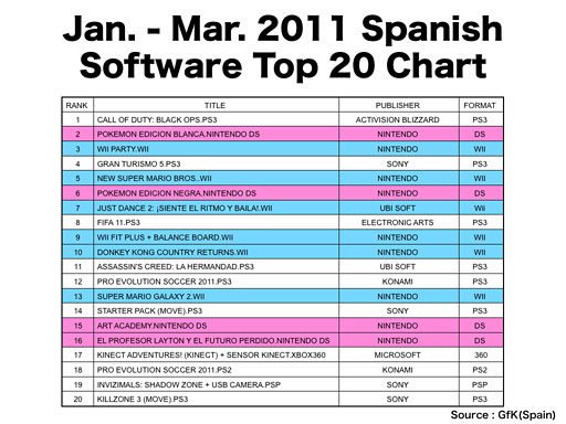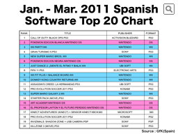 In Spain, there are 10 titles for Nintendo platforms in the software top 20 chart for January to March this year.