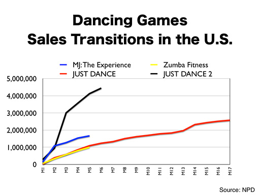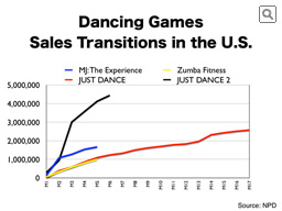 The same trend can be seen in Europe. "ZUMBA Fitness" was released for other consoles at the end of last year, while it was released for Wii only just recently, but I hear that the sales for Wii exceeded the cumulative sales for the other consoles only two weeks after the launch for Wii, which made me believe that dancing games and Wii are a good match.