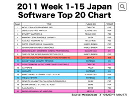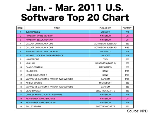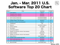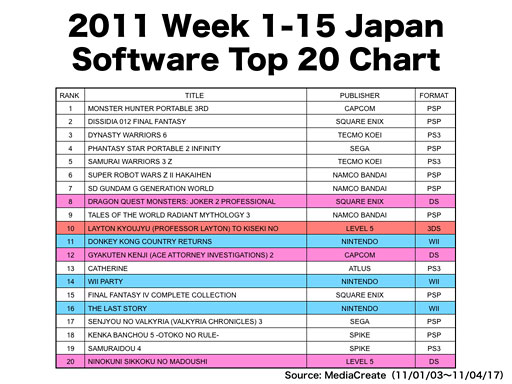 This chart shows the 20 best-selling software titles in Japan during the first 15 weeks of 2011.