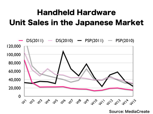All hardware showed growth in February. This is said to be a rebound from the shrinking sales in January which resulted from a cold weather spell and other weather-related influences. In March, there was an overall decline but the rate of decline was a bit larger for Wii.