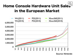 Looking at the cumulative sales transition from the beginning of the year, the sales of PS3 are exceeding those of last year, but Wii’s sales showed a year-on-year loss. Xbox 360 is selling well in the U.S., but the transition is nearly the same as last year in Europe.