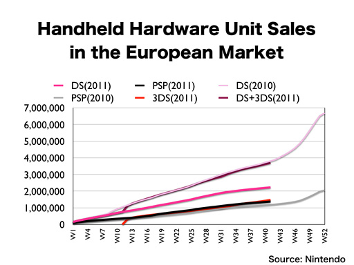 I would also like to share the data for the Japanese market. Japan was the first market to popularize the Nintendo DS, and it is therefore difficult for the cumulative sales of the Nintendo 3DS to catch up with the cumulative sales of Nintendo DS after its second year-end sales season, but by looking at the increase after the markdown of the Nintendo 3DS, we can see that the sales pace is now even better than that of the Nintendo DS in the corresponding period, so I think we can imagine large growth for the Nintendo 3DS in the year-end sales season.